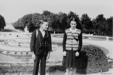 Laure Le Guillou and her grand-mother in front of the Orangerie